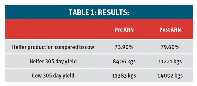 Since working with Liz and the ARN Heifer Team, Treworgie Farm has seen clear improvements in daily liveweight gain, reduced the need for interventions in young calves and greater confidence in the future herd. Growth rates have improved by 82% and fertility is on track to improve the age of first calving. Heifer production has improved, also due to the transition onto a new robotic milking system. Table 1 shows the improvements over a 2 year period.